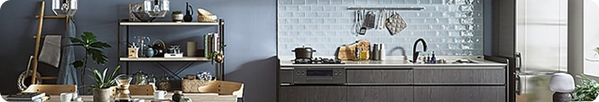 大きな物や背の高い瓶などがゆったりしまえる、シンプルで使いやすい収納がついたスタンダードモデル。